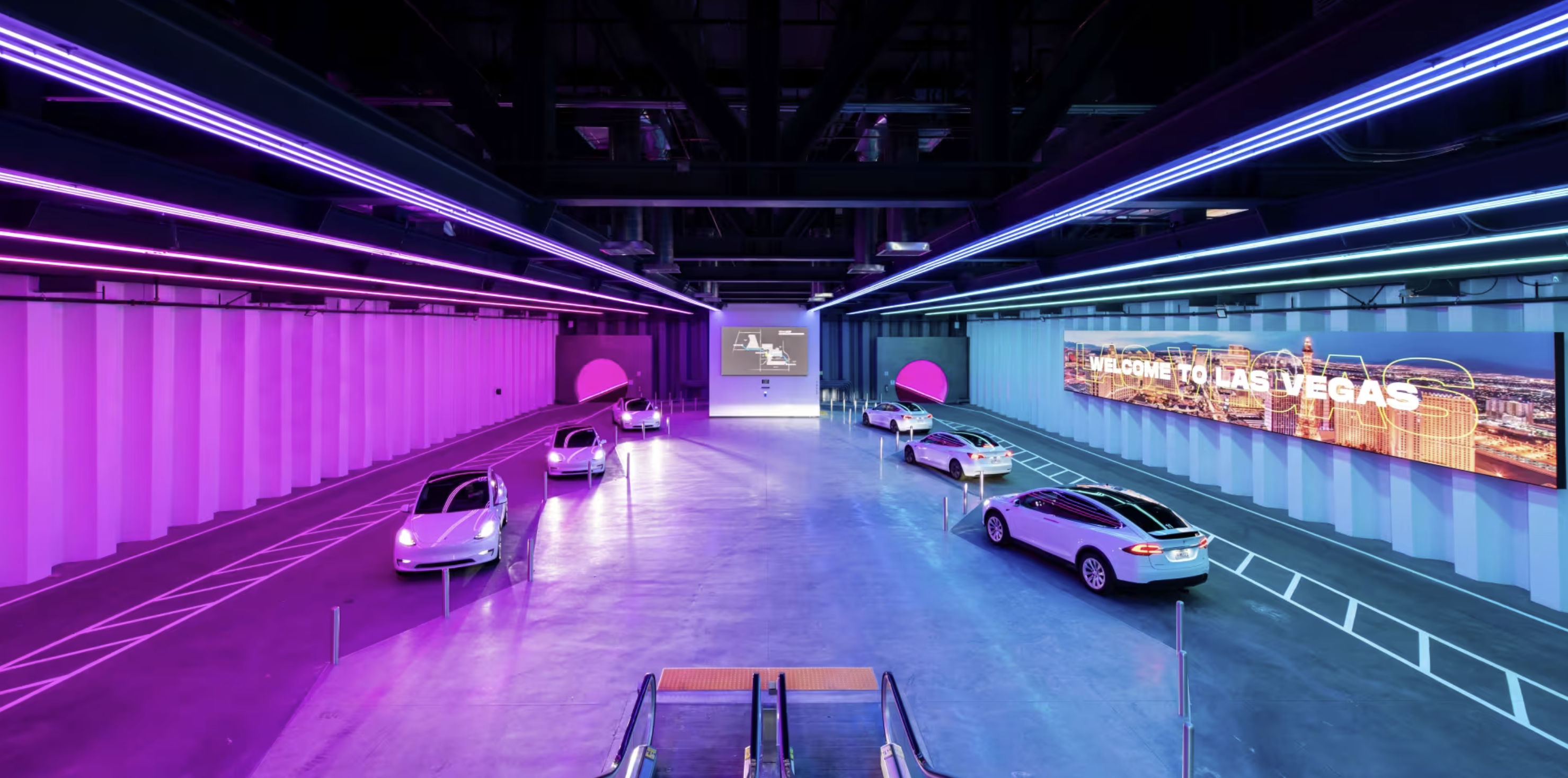 Tesla vehicles inside a station in the Vegas Loop.